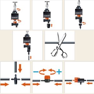 סט השקיה אוטומטית הכולל בקר השקיה של חברת CLABER תוצרת איטליה.